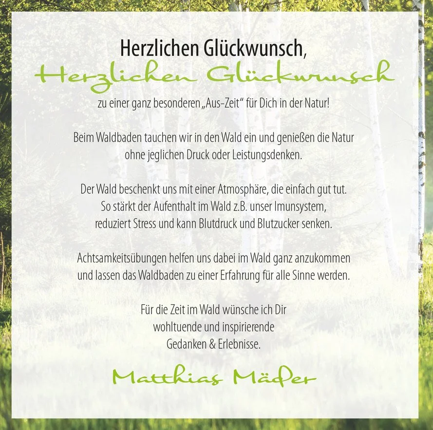Bereits ab 15,- EUR können Sie Sich oder einem anderen Menschen eine Auszeit beim Waldbaden schenken.